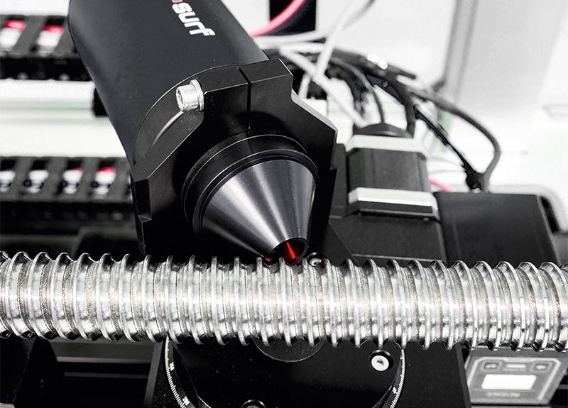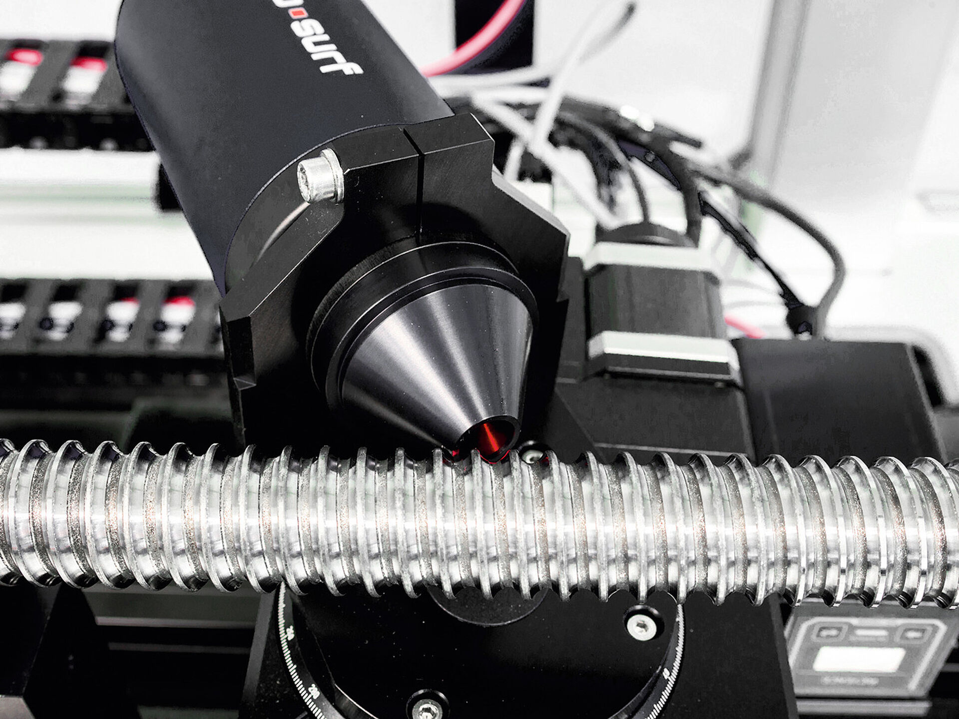 Um Drehbewegungen in Längsbewegungen umzusetzen, kommen Kugelgewindetriebe zum Einsatz, etwa in Werkzeugmaschinen und Lenksystemen. Besonders bei Letzteren hängen Wirkungsgrad, Verschleiß und mögliche Geräuschentwicklung stark von der Oberflächenbeschaffenheit der Kugellaufbahnen ab. Hier spielt MarSurf3D OptoRack seine Stärken voll aus: Das Gerät wurde speziell für die Prozessüberwachung beim Schleifen und Finishen von Zahnstangen und Kugelumlaufspindeln entwickelt. Durch eine Schwenkachse kann der Sensor auf Bahnen rechts und links vom Druckpunkt der Laufbahnen die Rauheit und Welligkeit an beliebigen Stellen der Spindel separat messen. - MarSurf3D OptoShaft