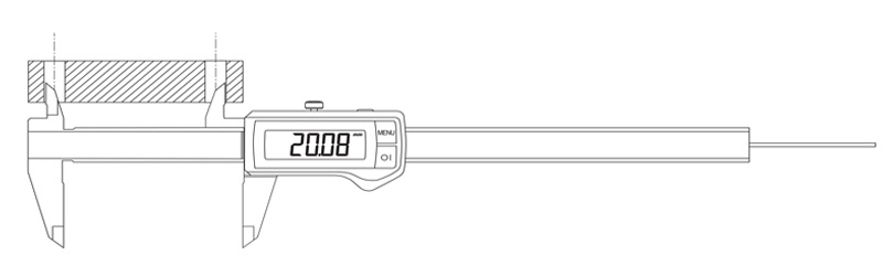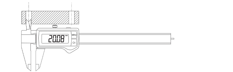 However, digital calipers also have the capability to make compound measurements. Since an electronic digital caliper can be zeroed at any point, you can use it to do some of the arithmetic required for calculating the results of a measurement. For example, the following procedure can be used to measure the center distance between two bores of equal diameter: