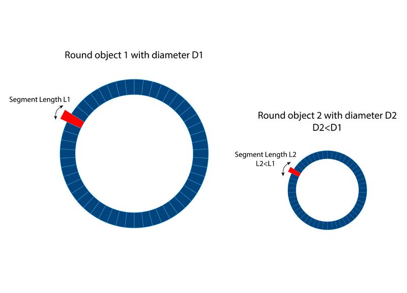 Form filters for roundness measurements are usually specified as angular size, but not in angular degrees, rather in a unit known as "waves per revolution" or UPR for short. Many users choose 50 UPR as the default value. This means that the arc length is 1/50 of a circle or a section on the surface of a round object, which corresponds to 7.2 degrees. However, the arc length changes analogously to the diameter of the workpiece.