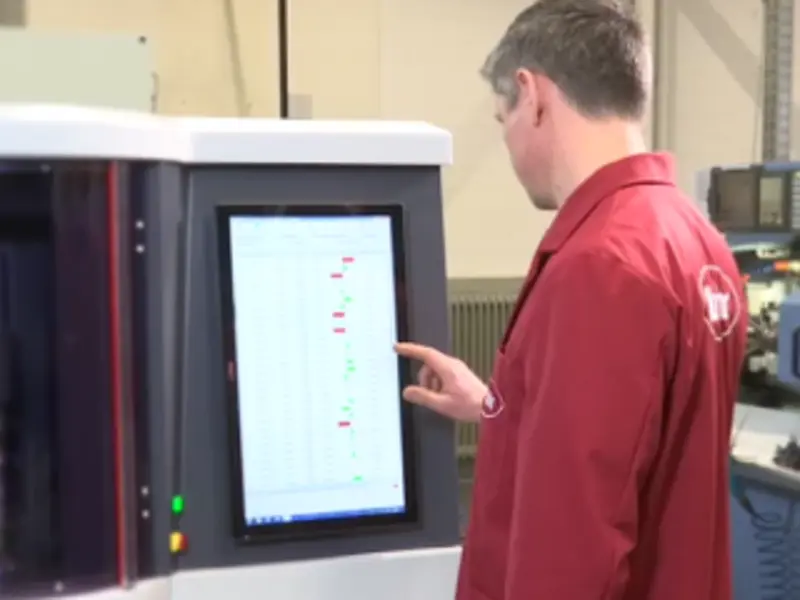 Câmera de matriz óptica rápida em combinação com apalpadores de alta precisão para medir um grande número de características em peças de trabalho rotacionalmente simétricas.